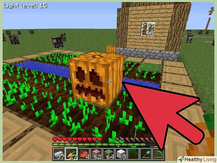 Знайдіть гарбуз.Гарбузи ростуть на землі з травою під відкритим небом (але не у високій траві і не на снігу). Найпростіше гарбуз знайти на рівнині. Щоб зробити одного залізного голема, знадобиться одна гарбуз (або світильник Джека).- Потрібна тільки одна гарбуз, щоб створити гарбузову ферму і виростити скільки завгодно гарбузів. Спочатку на верстаті з гарбуза скрафтіте чотири гарбузове насіння; тепер посадіть їх на грядках біля води (залиште одну незасіяну грядку поруч з кожною засіяної). Гарбузи виростуть на незасіяних грядках.[1]