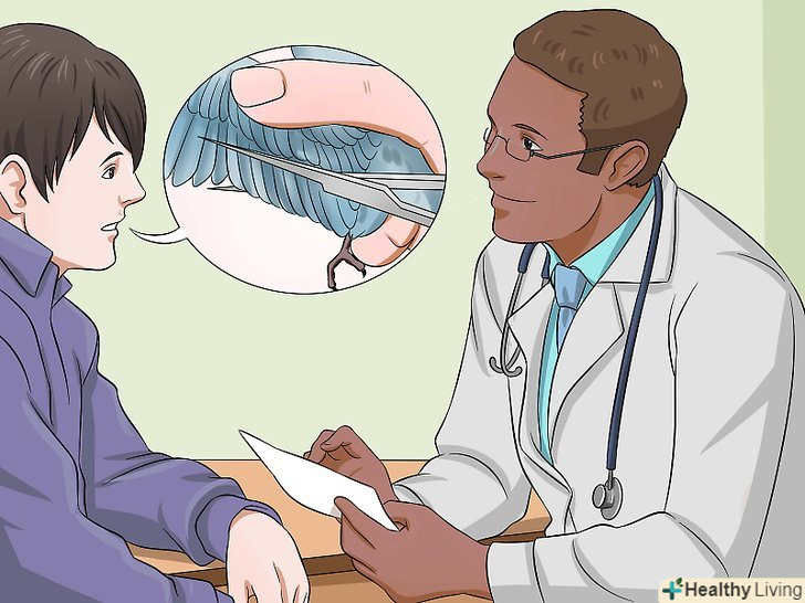 Подумайте над тим, чи хочете ви обрізати крила своєму хвилястому папузі. це рішення може бути для вас непростим, якщо у вас мало досвіду. У разі виникнення будь-яких питань про процедуру обрізки крил, обговоріть їх з ветеринаром. [5]- Правильна професійна обрізка крил не викликає у птиці ніяких больових відчуттів. З обрізаними крилами ваш вихованець не зможе літати протягом декількох місяців поки зрізані з крил махові пір'я не відросте знову. При такому підході вам можна буде залишати дверцята клітки відкритою, щоб папужка мав більше можливостей для дослідження навколишнього оточення і менше шансів на втечу з вашого будинку. Крім того, птицю з обрізаними крилами буде простіше навчати.