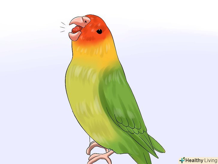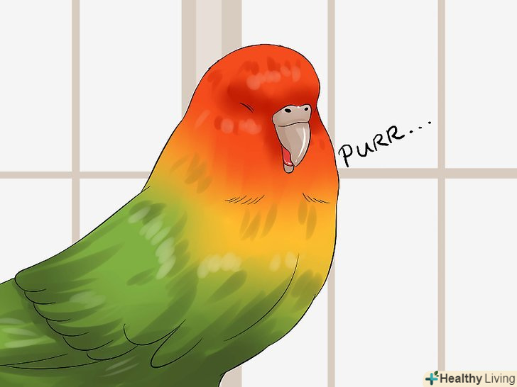 Прислухайтеся до поскрипування дзьобом і "муркотіння". ці звуки не завжди бувають гучними, деякі з птахів видають їх дуже м'яко і практично безшумно. Незалежно від того, яким чином ваш вихованець поскрипує дзьобом і «муркоче» собі під ніс, така поведінка зазвичай вказує на те, що птах щаслива і хоче поспілкуватися або пограти з вами. [14]