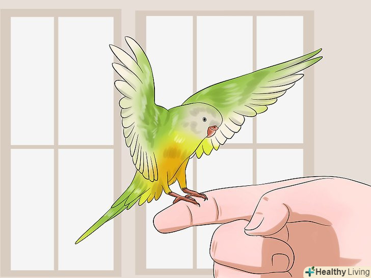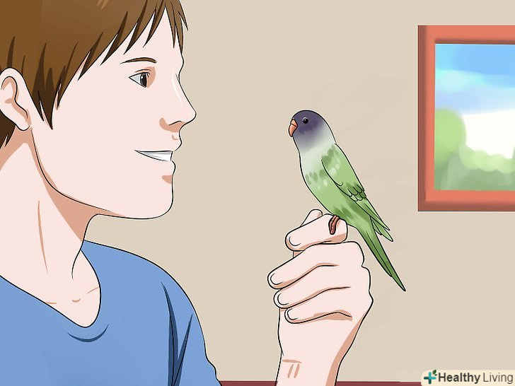 Сприяйте розвитку довіри у папуги. для цього демонструйте йому своє доброзичливе ставлення, тим самим підтверджуючи, що ви не уявляєте небезпеки. Регулярно розмовляйте з птахом, використовуючи ласкавий і спокійний тон голосу. Також слід дозволяти птиці харчуватися і розважатися поза її кліткою, одночасно спонукаючи її до спілкування з вами. Через деякий час вихованець буде відчувати себе поруч з вами абсолютно комфортно і в повній безпеці, так що почне сам приходити до вас, щоб надати знаки своєї уваги. [21]
