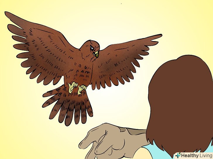 Перш за все, навчіть сокола стрибати або підлітати до рукавички на вашому кулаці. як тільки він звикне до рукавички, покажіть йому приманку.