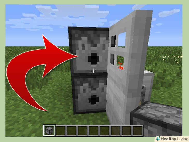 Покладіть поруч з нею будь-який блок. Зверху покладіть червоний камінь.