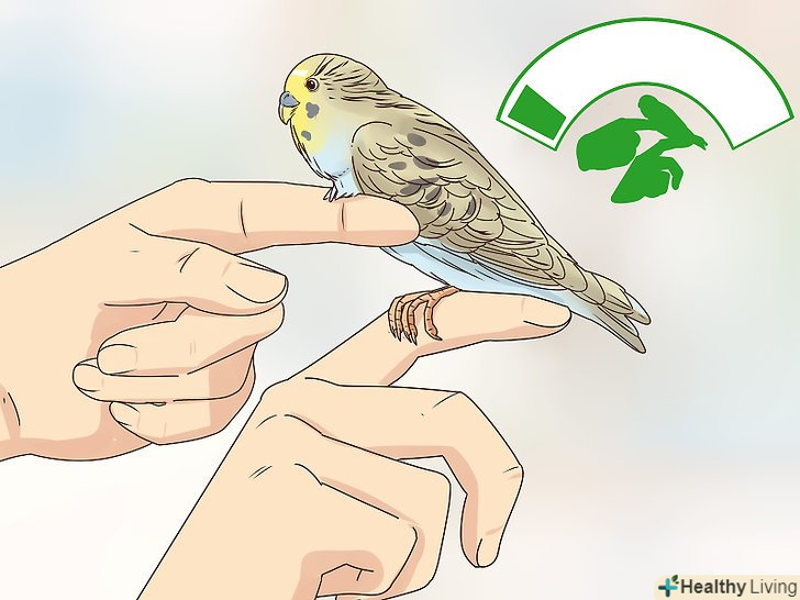- Перш ніж взяти папугу в руки, згинайте палець, з тим щоб показати птиці, що ви не уявляєте небезпеки, і щоб папуга відчував себе спокійно.