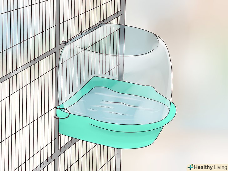 Розмістіть в клітці купалку. хвилясті папужки можуть багато смітити, але самі вони люблять залишатися чистими. Заради розваги вони навіть можуть пробувати пірнати. Пошукайте в зоомагазині міцну мініатюрну купалку, яку можна підвішувати до стінки клітини. Вона повинна бути доступною для папуг і легко наповнюється водою зовні клітини.- Не наповнюйте купалку занадто сильно. Папужки не повинні розплескувати воду на дно клітки при кожному відвідуванні купалки.