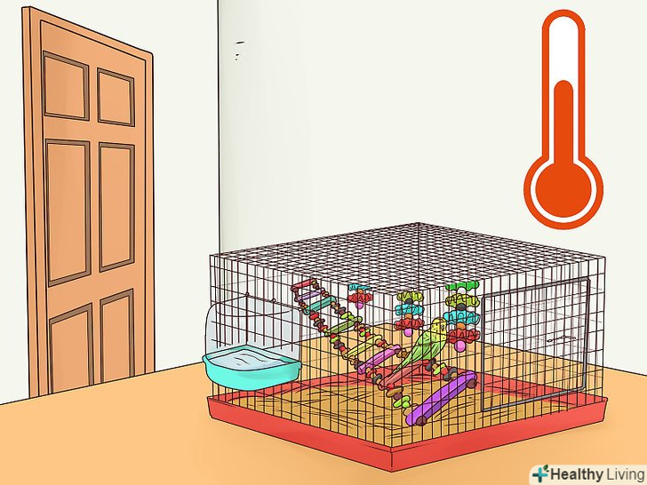 Подумайте про кімнату для розміщення клітини. постарайтеся поселити птахів в теплій кімнаті без коливань температури. Добре освітлювана кімната буде забезпечувати птахам додаткову стимуляцію і радісне життя. Крім того, кімната не повинна розташовуватися далеко від активності домочадців, інакше птиці буде самотньо і вона так і не звикне до людей.- Не ставте клітку біля сонячного вікна або поблизу від постійно відкриваються двері. Холодні протяги і перегрів на сонці можуть погубити ваших птахів.