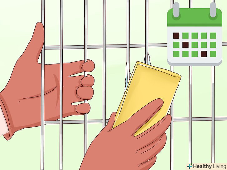 Чистіть клітку хвилястого папуги не рідше одного разу на тиждень. це дозволить захистити птицю від захворювань і глистів. Мийте клітку виключно щадним милом для миття посуду і не застосовуйте чистячих засобів, якщо тільки ви на всі сто відсотків не впевнені в тому, що вони безпечні для птахів.- Спробуйте обприскувати птицю водою з пульверизатора з дрібним розпиленням, щоб птиці не було жарко.