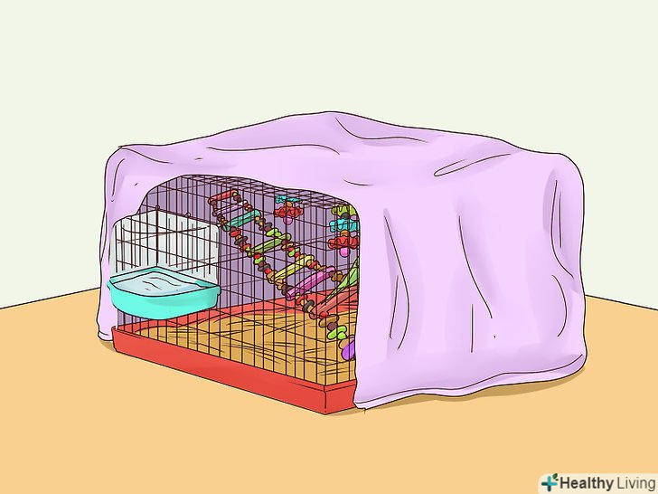 Забезпечте хороші умови для нічного сну. коли підійде час сну, просто накиньте на клітку легкий рушник або ковдру. Переконайтеся в тому, що при цьому в клітці зберігається достатня вентиляція, щоб ваша птах не задихнулася.- Також це корисно в тому випадку, якщо потрібно втихомирити галасливу птицю. Ковдра дозволить приглушити більшу частину звуків.