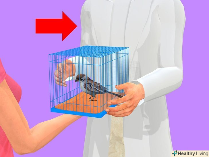 Тримайте птицю в теплі. дуже важливо, щоб хвора пташка перебувала в теплі. Необхідно, щоб в клітці було тепло, за винятком тих випадків, коли у птиці висока температура: якщо помістити таку птицю в дуже тепле приміщення, температура тіла підвищиться ще більше, і ваш вихованець може загинути. Візьміть до уваги зовнішні ознаки: якщо птах перегрілася, її крила відставлені від тіла, а дихання часте і утруднене. Якщо ж птиці холодно, вона сидить нахохлившись.- Спробуйте помістити в клітку обігрівальну лампу. Такі прилади продаються в зоомагазинах, і зазвичай їх використовують для обігрівання тераріумів. Постарайтеся знайти прилад із зеленою лампою потужністю 40-60 ватт. Лампи білого світла набагато менш ефективні. У нічний час вимикайте лампу. Як варіант, можна помістити на дно клітки пляшку з гарячою водою, загорнуту в рушник або плед. При виборі методу орієнтуйтеся на те, що буде зручніше вам і Вашому вихованцеві.