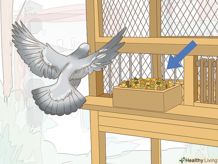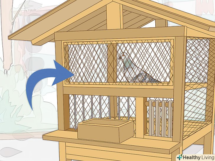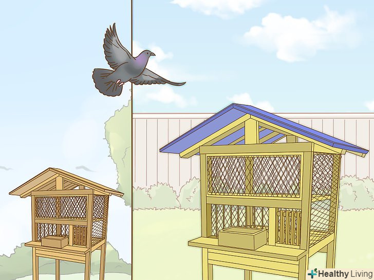 До прибуття голубів побудуйте для них голубник. як тільки голубів доставлять до Вашого будинку, вам буде необхідно визначити їх на нове місце проживання, тому вам слід підготуватися. Вольєри для голубів називаються голубниками і можуть мати різні розміри і конфігурації. Ви можете самостійно побудувати голубник, або найняти для цього людей, або навіть можна придбати готову голубник. Кожній парі голубів потрібно приблизно 0,23-0,28 кубометра простору всередині голубники, тому розмір голубники буде також диктувати максимальну кількість голубів, яке ви можете завести. [6]- Одними з найважливіших для запам'ятовування речей про голубниках є наступні моменти: ви повинні забезпечити голубам захист від хижаків (включаючи сусідських кішок), голубник повинна мати внутрішнє і зовнішнє (безпечне) простір для птахів, вам слід забезпечити прекрасну вентиляцію голубники, а також організувати додатковий простір для зберігання корму та обладнання (вам не варто зберігати це десь в іншому місці). Якщо ви також плануєте зайнятися розведенням поштових голубів, то вам додатково буде потрібно окремий простір для племінних пар і для їх молодих нащадків. [7]