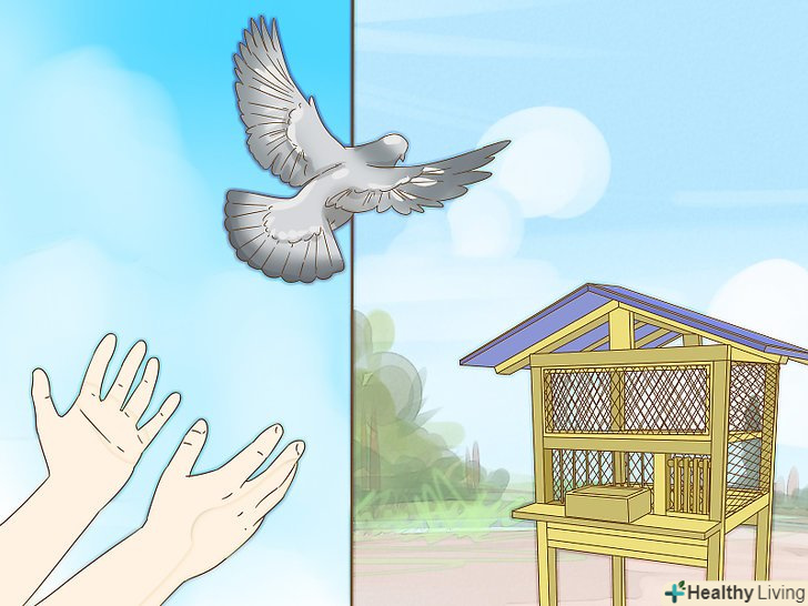 Познайомте голубів з їх новим будинком. якщо це ваші перші голуби, то ви можете просто посадити їх в голубник без будь-яких проблем. Однак, якщо ви поповнюєте свою колекцію новими голубами, вам необхідно потримати їх окремо від старих голубів протягом пари тижнів. [13]