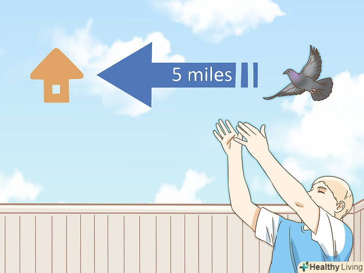 Почніть тренувати голубів повертатися в голубник після випускання на відстані. цей етап навчання можна почати тоді, коли голубам буде приблизно 6-8 тижнів. [18] почніть з віддалення від голубники на 1,5 км і опускання голубів в цьому місці. Робіть це по кілька разів на тиждень. [19]- Для транспортування голубів до необхідного місця використовуйте клітку або кошик.