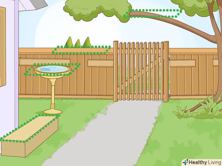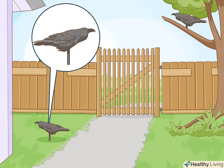 Приберіть з двору всі предмети, які можуть відлякувати ворон. ворони не переносять гучний шум, тому такі предмети, як дзвіночки або скрипучі ворота можуть відлякувати птахів. [1] крім того, ворони бояться предметів з поверхнею, що відбиває, при русі яких з'являються відблиски. Лякала або кулі з "очима" для відлякування птахів спочатку відлякують ворон, але, як було згадано вище, це досить розумні птахи, і, як правило, вони швидко розуміють, що це всього лише імітація птахів. [2]
