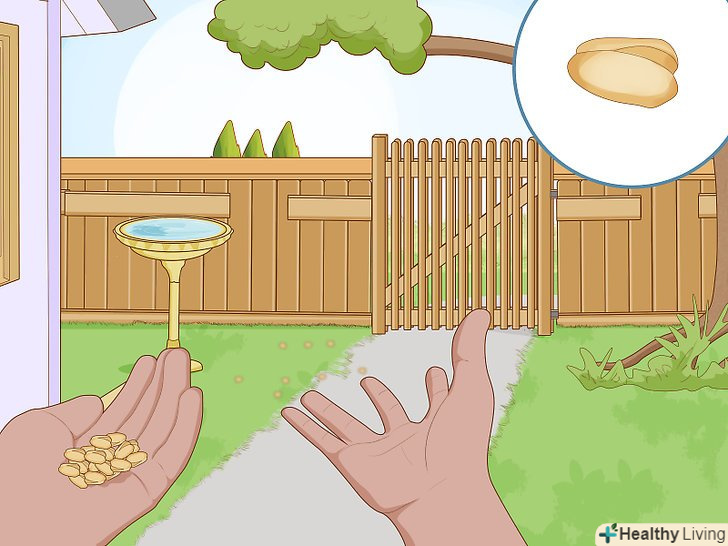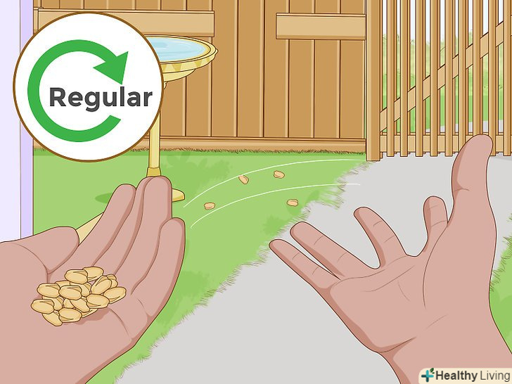Розсипте їжу. ворони їдять все, тому вам не потрібно переживати про те, чим годувати своїх «гостей». Спочатку, щоб залучити ворон у свій двір, вам знадобиться більший корм, наприклад арахіс в шкаралупі. Завдяки цьому птахам легше буде його помітити. Після того, як вони стануть завсідниками у вашому дворі, можна розширити вороний раціон, додаючи в нього корм для домашніх тварин або м'ясні відходи. Ворони їдять багато, тому сміливо можете сипати більше корму.