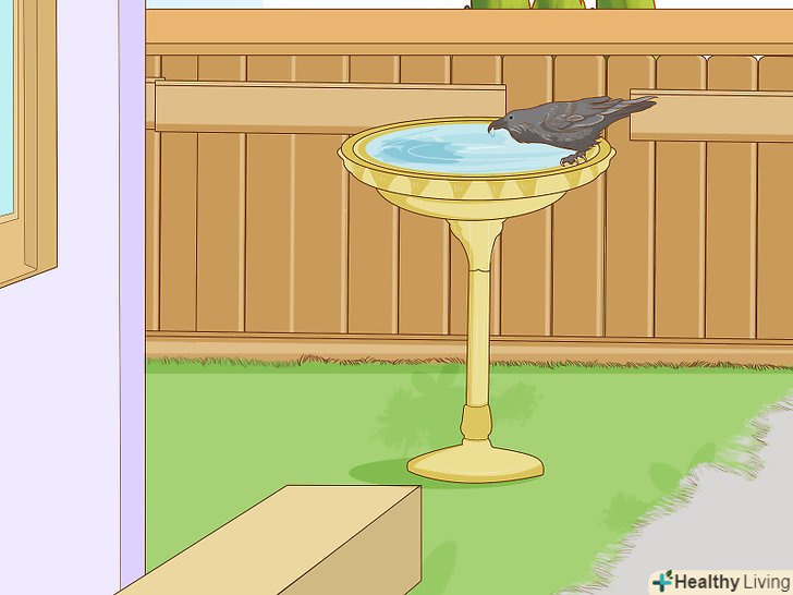 Подбайте про воду. Наливайте воду для ворон в маленькі, неглибокі контейнери. Вони повинні бути достатньо стійкими, щоб коти, які шукають воду, або самі птахи не перевернули їх. Слідкуйте за тим, щоб вода не замерзала взимку, і у птахів Завжди був доступ до води.