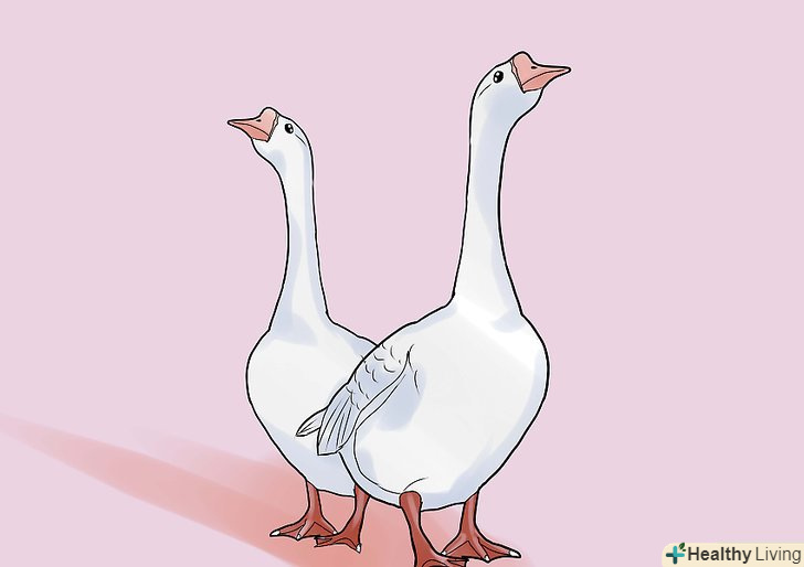 Придбайте гусей. вам знадобиться як мінімум пара гусей або більше, якщо хочете. У випадку з більш спокійними породами ви можете придбати дорослих або молодих гусей. Якщо ви оберете більш агресивну породу, найкраще брати гусенят. Найкраще, щоб у гусака був товариш. Якщо такого немає, ви повинні придбати ще гусей або навіть кілька качок, щоб ваша птах не відчувала себе самотньою і втраченою. Якщо варіант з покупкою додаткових гусей є для вас кращим, ви повинні як слід стежити за місцем утримання. Клітини повинні бути чистими, вода свіжою, а запах не повинен збивати з ніг. Тварини повинні виглядати відносно чистими, здоровими і бути рухливими. А тепер уважніше. Якщо вони реагують або тікаючи геть, або наближаючись з цікавості-це, як правило, є ознакою здоров'я. Це не так вже й складно проте знайти вільних гусей (і качок). Просто попросіть друзів дати вам знати, якщо у них з'явиться інформація про таких. Дуже часто люди бажають позбутися від тварин через те, що не можуть більше стежити за ними.