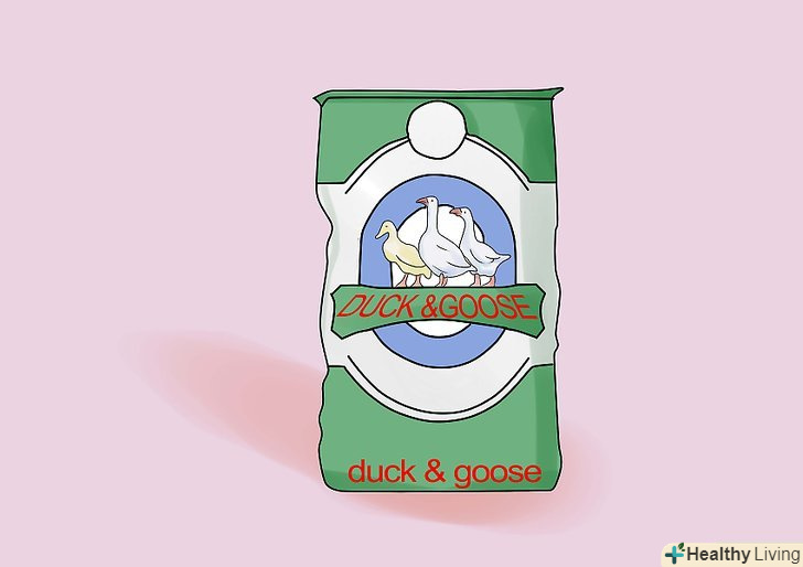 Придбайте якісну їжу для домашньої птиці. Гуси будуть проводити багато часу, поїдаючи їжу навколо ставка, а також пощипуючи траву на пасовище. У той же час, як і люди, їм необхідно збалансована дієта для задоволення потреби організму у вітамінах і мінералах. Їх раціон повинен бути спеціально розроблений для домашньої птиці (гусей, качок і т.д.) і їжа повинна купуватися в місцевому спеціалізованому магазині або у фермерів.