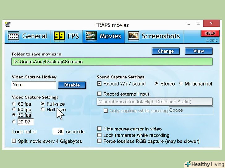 - Video: налаштуйте гарячі клавіші для запису, паузи і зупинки; натисніть на вкладку Settings і перейдіть в пункту Sound щоб налаштувати захоплення звуку в ваших записах; встановіть тут же оптимальну кількість кадрів в секунду (30-оптимальна кількість).