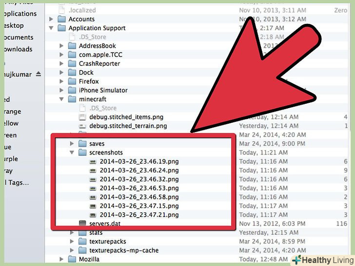 Знайдіть свій скріншот слідуючи в потрібну папку на вашому комп'ютері. надрукуйте:- / Users / * Ваше ім'я користувача* / Library / Application Support / minecraft / screenshots /