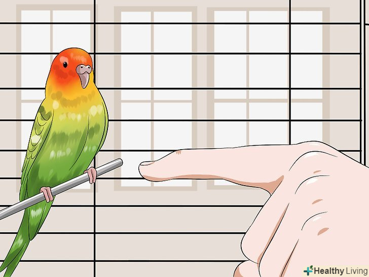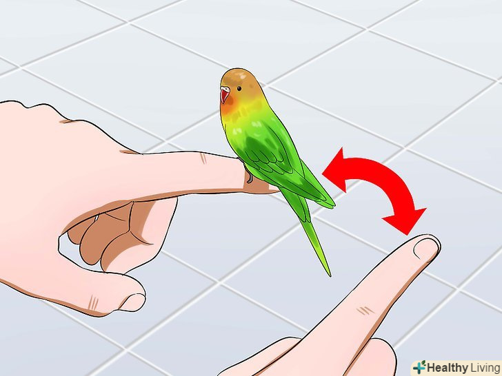 - Заохочуйте птицю частуванням кожен раз, коли вона буде пересідати на інший палець. [49]