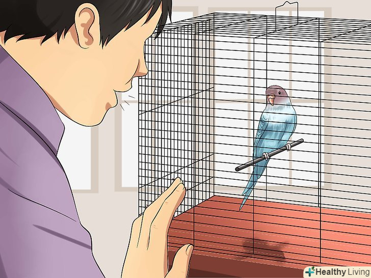 - Коли птах перестане нервово пурхати по клітці, коли ви будете до неї наближатися, стане ясно, що вона вже відчуває себе комфортно у вашій присутності. Однак, якщо птах нерухомо завмирає на жердинці, то вона ще не дуже добре акліматизувалася до навколишнього оточення. [6]