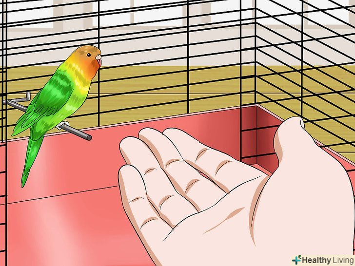- Говорячи практичною мовою, вам буде необхідно засовувати руку в клітку птиці щоранку, коли ви будете насипати їй корм і міняти воду. Повільно виконуючи щоденні рутинні процедури, ви зробите птицю більш терпимою по відношенню до руки. [16]