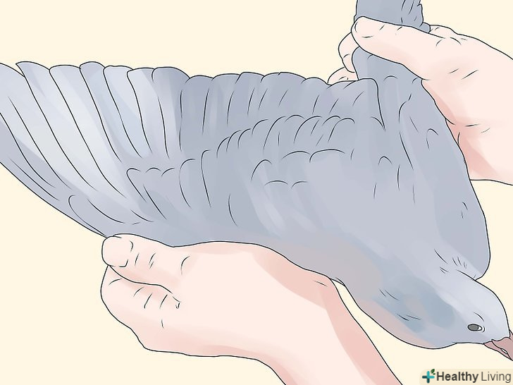 Є спосіб безпечно і безболісно зв'язати пір'я на крилах голуба. вам потрібно акуратно взяти його і перев'язати пір'я один за одним, щоб він не міг полетіти. Потім вам потрібно буде впускати голуба до себе в кімнату, годувати його і дозволяти прогулюватися (при вас) вранці і ввечері півгодини, потім ловити і ставити голуба назад в клітку. Таким чином, він ознайомиться з обстановкою і познайомиться з вами. Через 7-10 днів розв'яжіть пір'я.