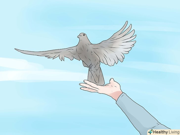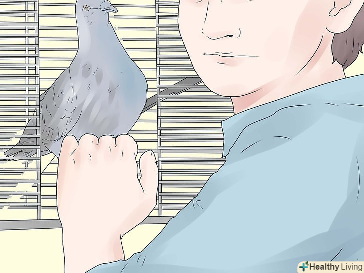 Коли голуби пробули в клітці близько двох тижнів, ви можете її відкрити і поманити їх, простягнувши руку з кормом. якщо вони не застрибнуть на вашу руку, а будуть бродити навколо, не хвилюйтеся: їм цікаво, і вони хочуть досліджувати місце, де вони живуть.