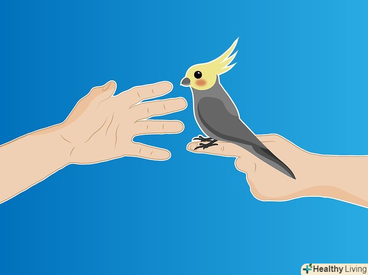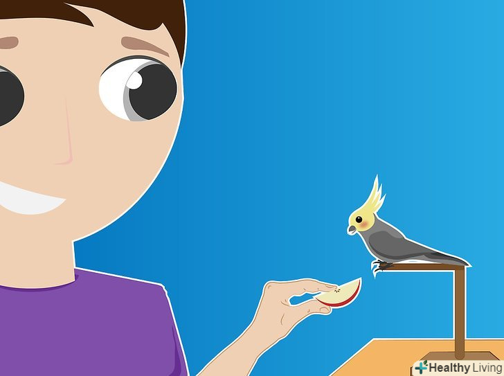 Переконайтеся, що ви винагородили птахів, які поводяться тихо. ви можете дати птиці часточку яблука, очищений попкорн і навіть макарони (без додаткових інгредієнтів, таких, як соус для макаронів, який може містити багато натрію і може бути небезпечний для птахів).