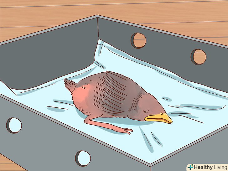 - Якщо вам потрібно надати допомогу птиці до передачі реабілітаційному центру, дотримуйтесь загальних правил, незалежно від виду. Наприклад, зігрійте пташеня, посадивши його в коробку з-під взуття. Застеліть дно серветками і виконайте отвори в кришці для вентиляції. Підкладіть під коробку електрогрілку на мінімальній температурі. [18] можна також нагодувати пташеня.