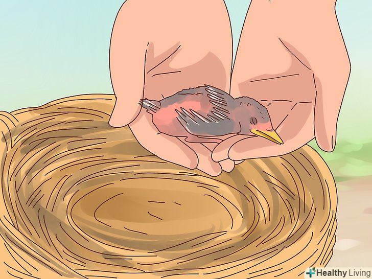 - Якщо пташеня холодний, зігрійте його в руках, перш ніж посадити в гніздо. Батько може виштовхнути замерзлого пташеня з гнізда, щоб він не охолодив яйця та інших пташенят. [14]