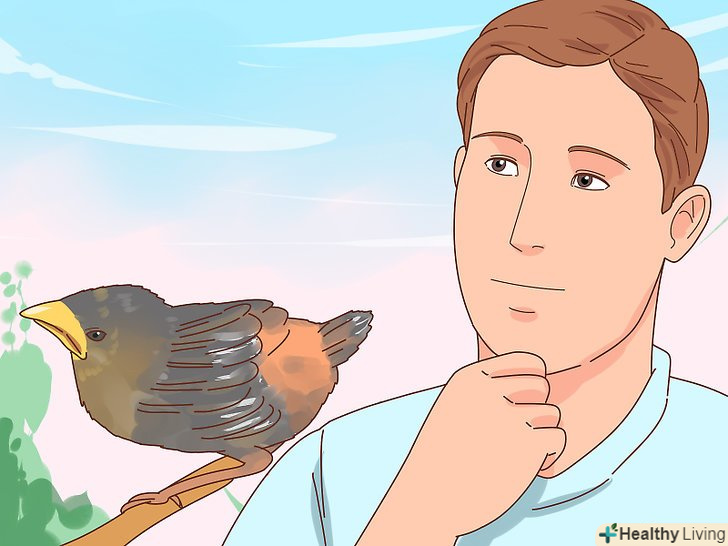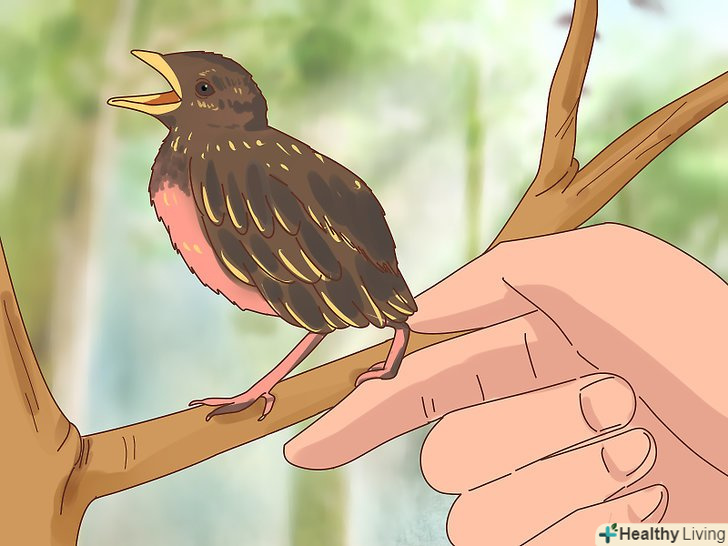 Не залишайте дику птицю собі. у більшості країн це заборонено законом – утримувати диких тварин можна тільки зі спеціальною ліцензією. Крім того, це не найпростіше заняття, оскільки годувати пташеня потрібно кожні 15-20 хвилин. [28]- Навіть якщо ви бажаєте пташеняті тільки хорошого, ви навряд чи зможете подбати про нього краще, ніж батьки або співробітники реабілітаційного центру.