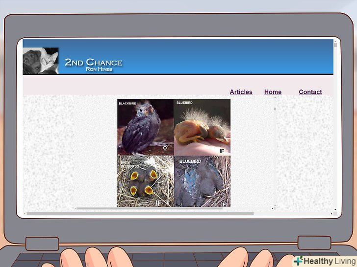 Зателефонуйте в ветеринарну клініку або в реабілітаційний центр для диких тварин. якщо вирішите відвезти птицю до ветеринара, знайдіть такого фахівця, який працює з птахами і дикими тваринами. Якщо у Вашому місті таких немає, попросіть ветеринара порадити Вам кого-небудь. [29]- Пошукайте найближчий до вас реабілітаційний центр для диких тварин в Інтернеті. [30]