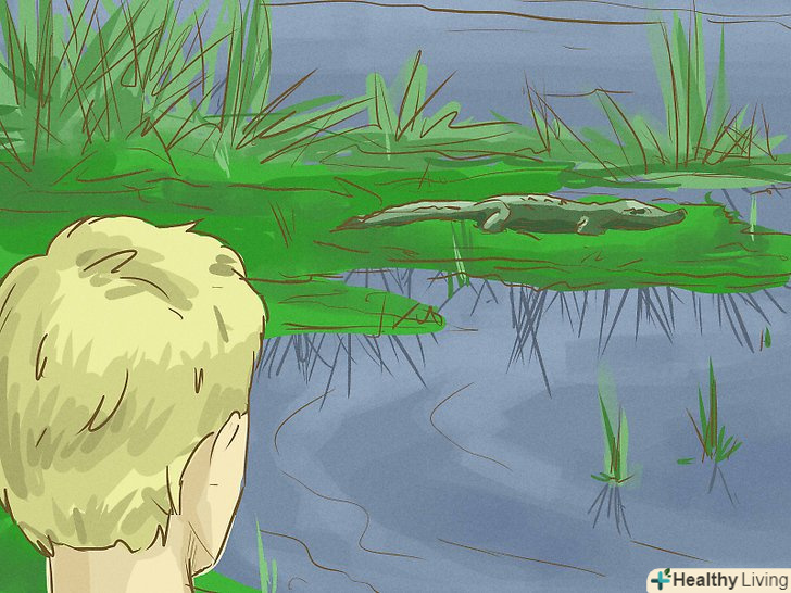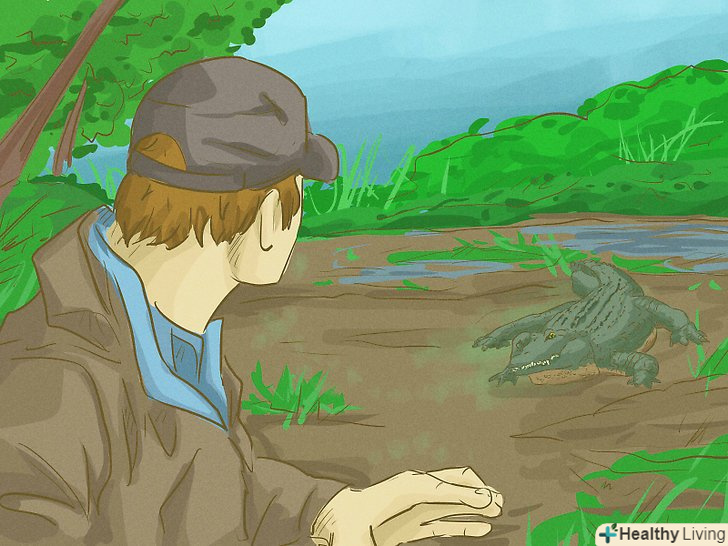 Дізнайтеся, де живуть крокодили, і тримайтеся подалі від таких місць. єдиний надійний спосіб вціліти в місцях, де водяться крокодили, полягає в тому, щоб уникати зустрічей з ними. Крокодили водяться в тропічних регіонах Африки, Азії, обох Америк і Австралії. Різні види крокодилів живуть як в прісній, так і солоній воді. [1] Якщо ви живете в тропіках або відвідуєте їх, дізнайтеся у представників місцевої влади, де мешкають Крокодили, алігатори або каймани, перш ніж наближатися до яких-небудь водойм.- Звертайте увагу на знаки, що попереджають про присутність крокодилів.