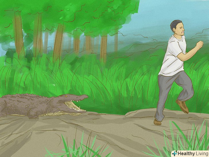 Якщо крокодил пробрався на вашу територію, біжіть. якщо ви раптово натрапили на крокодила або він почав рухатися до Вас, тікайте якомога швидше. Хоча Крокодили швидко плавають, на суші їх максимальна швидкість становить близько 17 кілометрів на годину — більшість людей здатні пробігти коротку дистанцію з більшою швидкістю. [15]- Біжіть від води, щоб на вашому шляху не попалися інші Крокодили.