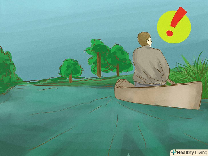 Постійно стежте за навколишнім оточенням. Якщо вам доводиться перебувати біля або посеред водойми, в якому мешкають крокодили, не втрачайте пильність. Пам'ятайте, що крокодили дуже добре маскуються, і навіть гігантська Рептилія може показувати з-під води всього лише свої ніздрі. Будьте особливо обережні поблизу мулистих і болотистих місць, а також серед прибережної рослинності. У таких випадках найкраще вважати, що навіть якщо ви не бачите крокодила, він ховається десь неподалік.- Тримайтеся на безпечній відстані від води, якщо йдете уздовж берега, і обходьте ділянки з прибережною рослинністю, в якій можуть ховатися Крокодили.
