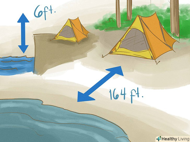 Якщо ви збираєтеся розбити табір в місцевості, в якій водяться крокодили або алігатори, виберіть місце подалі від води. розміщуйте намет не нижче, ніж в 2 метрах над рівнем найвищого найближчого водойми і на відстані не менше 50 метрів від кромки води. Огляньте місцевість і перевірте, чи не залишилося навколо харчових відходів і сміття після тих, хто міг розбивати табір до вас. Такі відходи можуть залучити крокодилів, тому очистіть від них територію, перш ніж ставити намети. Зберігайте їжу в недоступному для тварин місці і викидайте харчові відходи і сміття подалі від табору. [12]