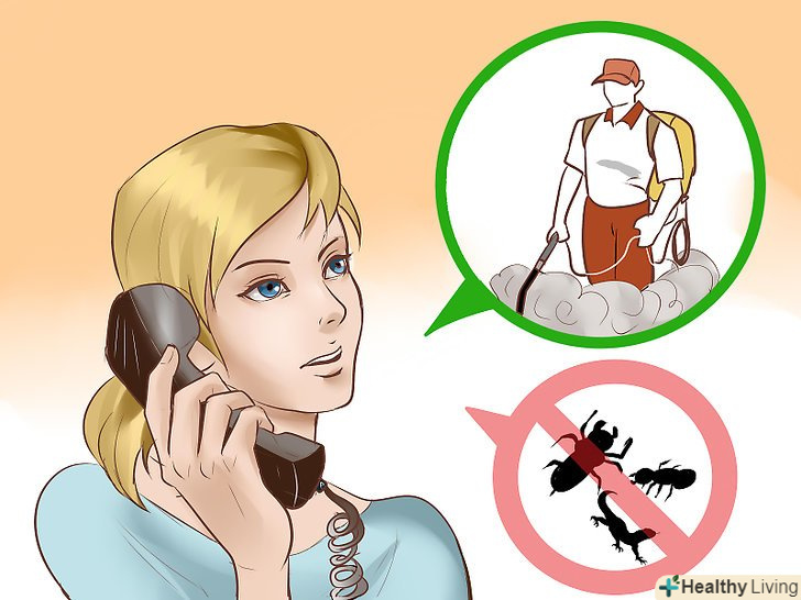 Викличте службу по боротьбі з шкідниками, якщо вважаєте, що ваш будинок піддався навалі ящірок. Дезінсектори досліджують ваш будинок і виявлять всі отвори, через які проникають ящірки, і при цьому усунуть великі популяції рептилій у вашому домі. Зателефонуйте до місцевої служби боротьби зі шкідниками, щоб дізнатися, чи пропонують вони таку послугу. [13]- Це хороший варіант, якщо у вас в будинку виявилася дуже велика ящірка.