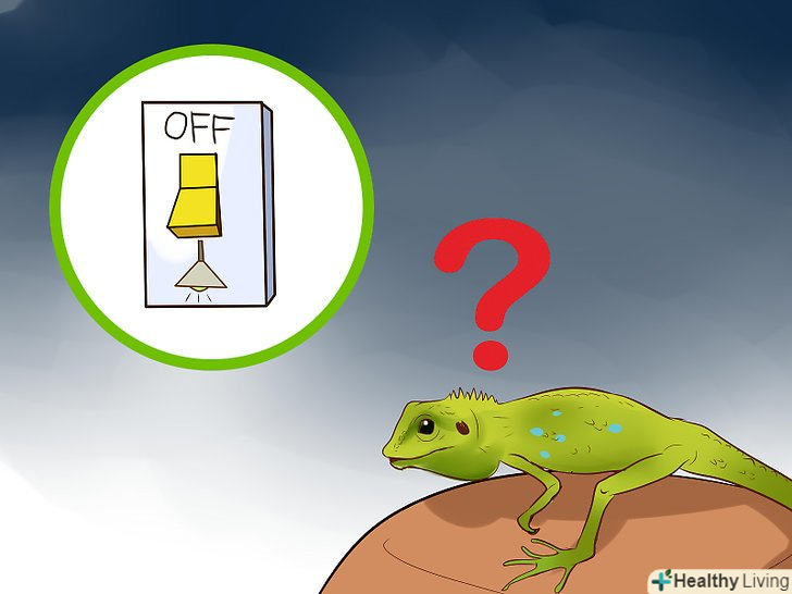 Вимкніть весь світло. ящірка може вийти з укриття, якщо подумає, що зовні темно. Закрийте всі жалюзі і штори, щоб в кімнату не потрапляло сонячне світло. Можна використовувати ліхтарик, щоб ви могли бачити. Як правило, в подібних випадках ящірки виходять протягом півгодини. [5]