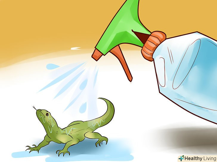 Бризніть на ящірку холодною водою, якщо вона продовжує тікати. якщо ящірка не йде в коробку, спробуйте розпорошити над нею або струсити на неї краплі холодної води. Завдяки цьому ящірка може сповільнитися або навіть застигнути на місці на хвилину або дві. І ви зможете накрити її коробкою. [8]