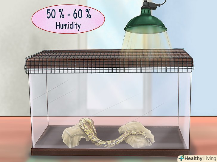 Підтримуйте відповідну вологість. Для того щоб змія залишалася здоровою, необхідно підтримувати відповідний рівень вологості. Це допоможе вашому вихованцеві зберегти здоров'я, до того ж так йому буде простіше скидати стару шкіру. Не забувайте контролювати рівень вологості в тераріумі. [12]- Рівень вологості повинен становити 50-60 %.