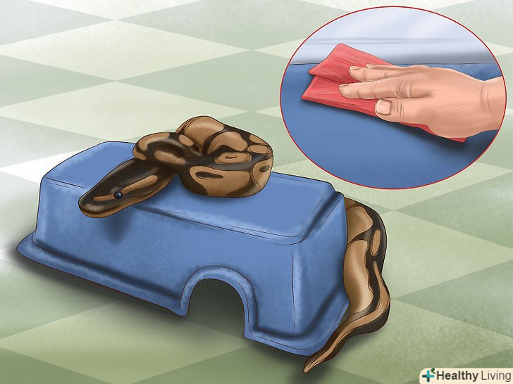 Повністю очищайте тераріум. при догляді за кулястим пітоном необхідно регулярно влаштовувати в його житло генеральне прибирання. Як правило, рекомендується повністю чистити тераріум і весь його вміст раз на місяць. Повна чистка допоможе зберегти здоров'я вашого вихованця і запобігти можливим захворюванням. [8]- Перед повним чищенням виймайте пітона з тераріуму.