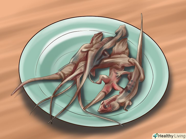 Не забувайте прибирати залишилася їжу. якщо змія що-небудь не з'їла, слід прибрати це з тераріуму. Не залишайте живу або мертву здобич в тераріумі, так як це може завдати шкоди здоров'ю вашого вихованця. Щоб кулястий пітон відчував себе комфортно, завжди видаляйте залишилася їжу. [18]- Безпечніше давати змії попередньо умертвлену здобич. Однак в цьому випадку залишилася їжа почне розкладатися, і її слід вчасно видаляти, якщо змія відмовиться від неї.