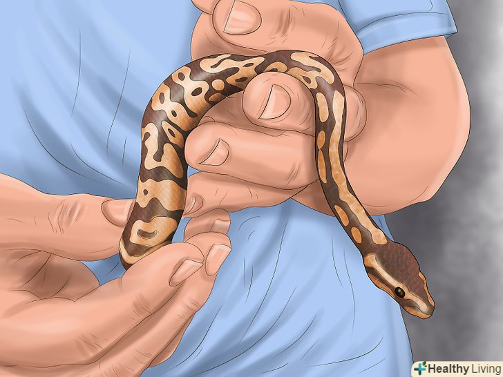 Знайте, як часто можна брати кулястого пітона на руки. у дикій природі Змії не привчені до того, щоб їх брали на руки. Тому слід знати, коли можна взяти свого вихованця і потримати його на руках, а коли це може викликати у нього стрес. Щоб визначити, чи готовий кулястий пітон до спілкування з вами, зверніть увагу на наступне: [4]- Дайте своєму вихованцеві хоча б один раз поїсти в новому для нього будинку, перш ніж брати його на руки.