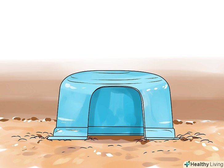 Спорудити для черепахи укриття. Балканські черепахи люблять копати і ховатися, тому важливо забезпечити вихованця таким місцем, в якому він буде відчувати себе в безпеці. Спробуйте спорудити для черепахи невеликий будиночок або просто поставте у вольєр харчовий пластиковий контейнер з отвором для входу і виходу. Черепахи вважають за краще спати саме в укритті.- Наявність укриттів особливо важливо в тому випадку, коли черепаха міститься в дуже жарких умовах. Простежте за тим, щоб у вольєрі обов'язково було затінене місце, куди вихованець міг би сховатися, якщо йому стане жарко.