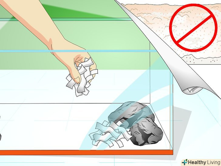 Не робіть підстилку. хоча у вас може виникнути бажання викласти гравієм підлогу клітини, не робіть цього, оскільки ящірка може проковтнути камінчики. [20] тим не менш, все залежить від конкретного виду вашої ящірки.- В клітку можна постелити щільну пергаментний папір. Такий папір не містить чорнила, які можуть бути шкідливими для вашої ящірки. Підійде і чистий газетний папір, на якій нічого не друкували. [21]