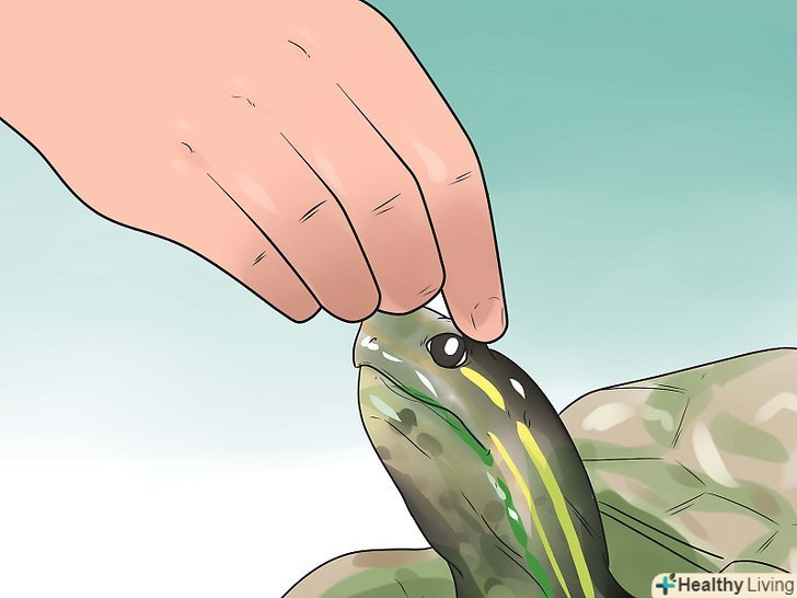 Почухайте підборіддя і щоки черепахи. спробуйте обережно почухати пальцем підборіддя і щоки черепахи. [4]