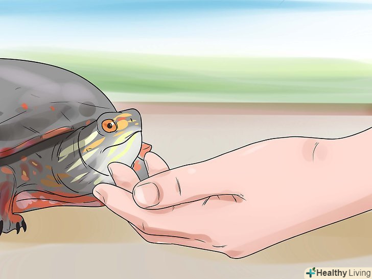 Підійдіть до черепахи спереду. якщо черепаха не буде вас бачити і ви раптово піднесете до неї руку, вона може злякатися і вкусити вас. Завжди наближайтеся до вихованця спереду, щоб він міг вас бачити.