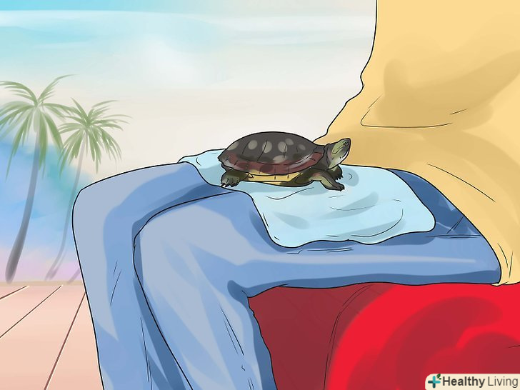 Забезпечте черепасі відповідну температуру змісту. Черепахи поводяться більш енергійно, краще реагують на оточення і більше схильні до спілкування при теплій температурі. Замерзла черепаха більше схильна остерігатися зовнішніх подразників, так як просто не в змозі точно зрозуміти, що саме відбувається навколо неї. Кращий час для спілкування з черепахою настає відразу після сонячних ванн або прогрівання під лампою розжарювання.- Черепахи потребують природного сонячного світла, а не тільки в лампах розжарювання і люмінесцентних лампах зі штучним ультрафіолетом. Брак сонячного світла може призводити до порушення кісткового метаболізму, при якому кістки черепахи починають руйнуватися. [16]