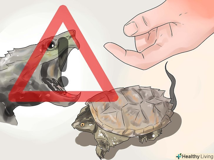 Ознайомтеся з існуючими для вас ризиками. Черепах рідко вважають небезпечними тваринами, здатними завдати фізичної шкоди людині. Проте, деякі види черепах, особливо, Кайманові черепахи, можуть досить болісно і травмонебезпечно кусатися. Крім того, черепахи можуть бути переносниками цілого ряду захворювань, небезпечних для людей. На шкірі черепах може бути присутня така бактерія, як сальмонела, від якої людина може серйозно захворіти. [10]- Зауважте, що сальмонелу не можна змити з черепахи.