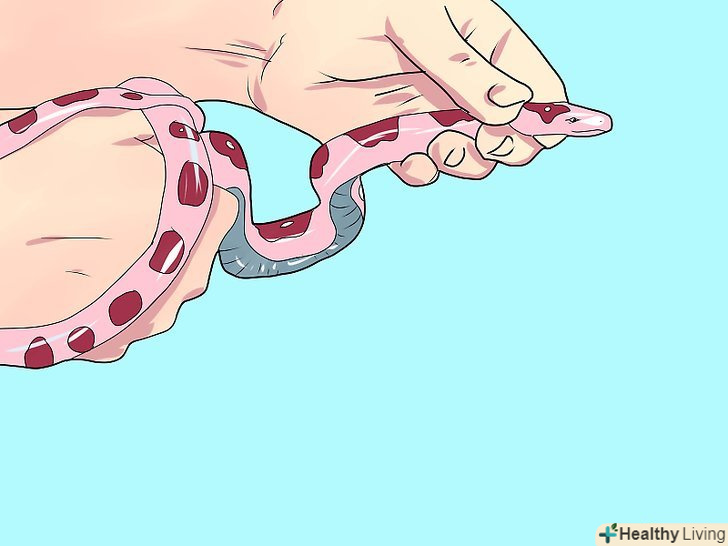 Доглядайте за своєю змією з обережністю. беріть змію посередині її тіла і підтримуйте обома руками. Тримайте її далеко від обличчя. Вихованці люблять, коли їх гладять по шерсті, а не проти неї. Не чіпайте змію 48 годин, після того, як вона поїла. Вимийте руки до і після контакту зі змією. Якщо вона чинить опір, не відмовляйтеся від своїх намірів, а наполегливо продовжуйте це робити, інакше вона ніколи не навчиться бути доброзичливою.